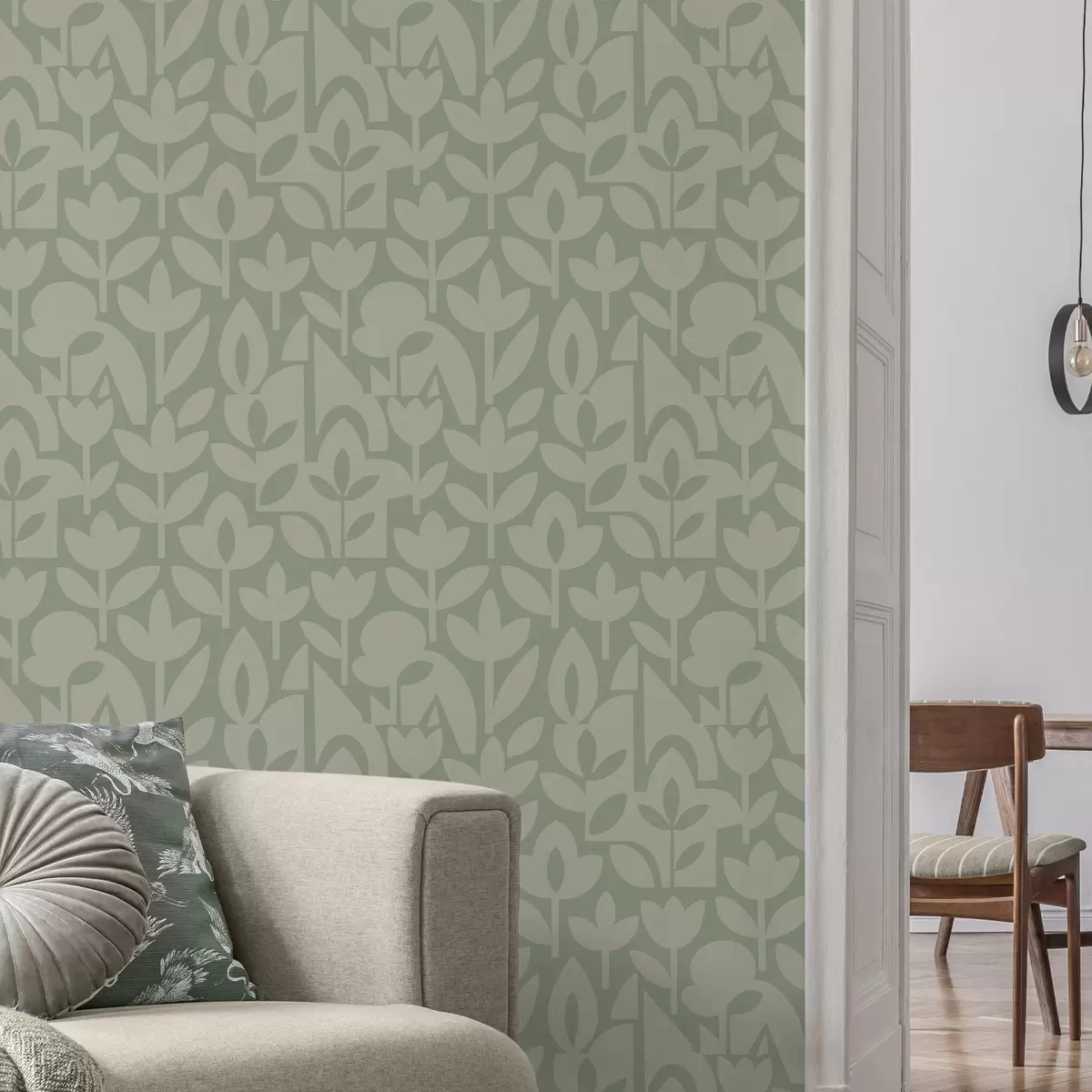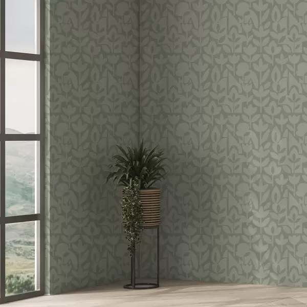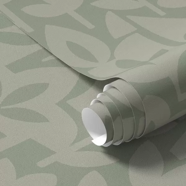 Papel pintado Siluetas florales geométricas en suave color salvia. Nr. a00875v1