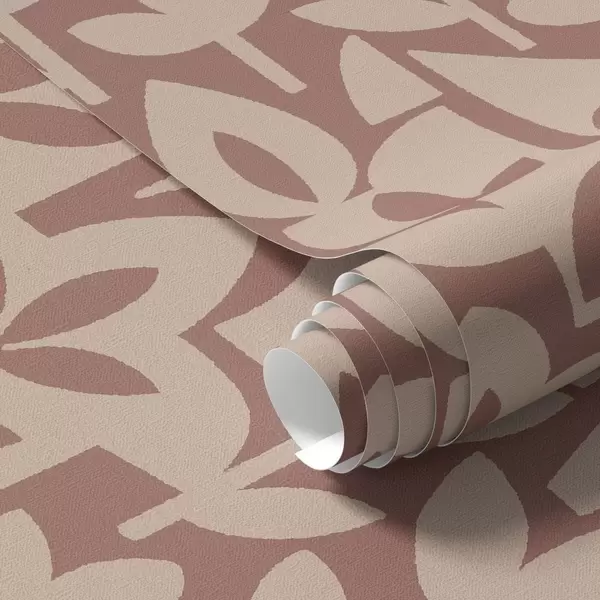 Papel pintado Siluetas florales geométricas en terracota y crema. a00875v2