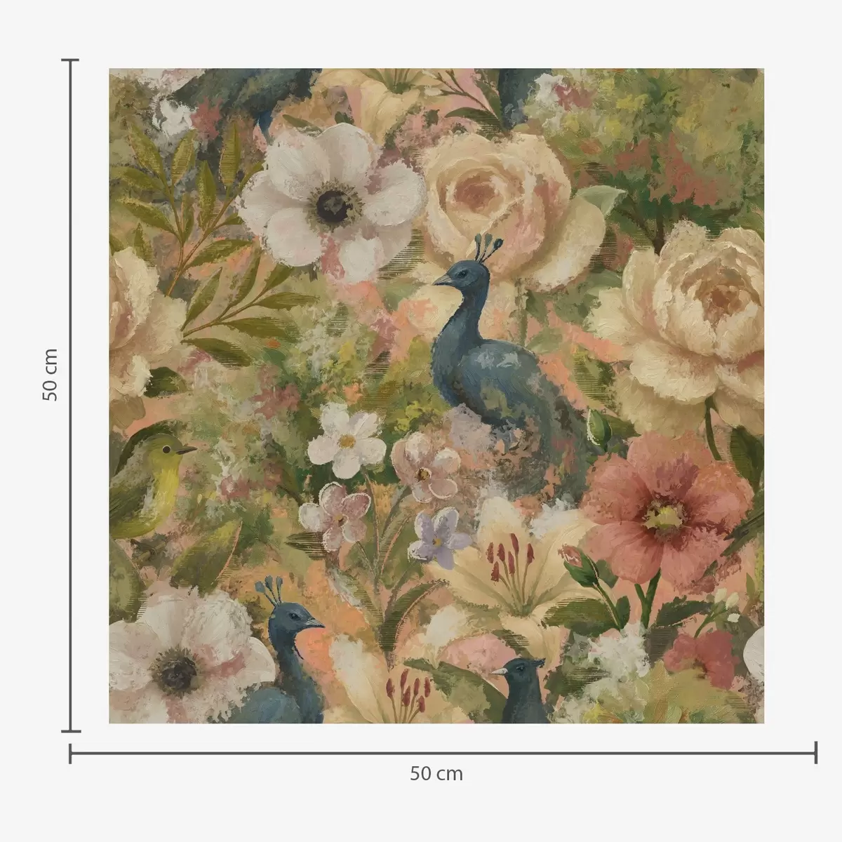 Papel pintado Jardín pintoresco con pavos reales y flores grandes Nr. a00885