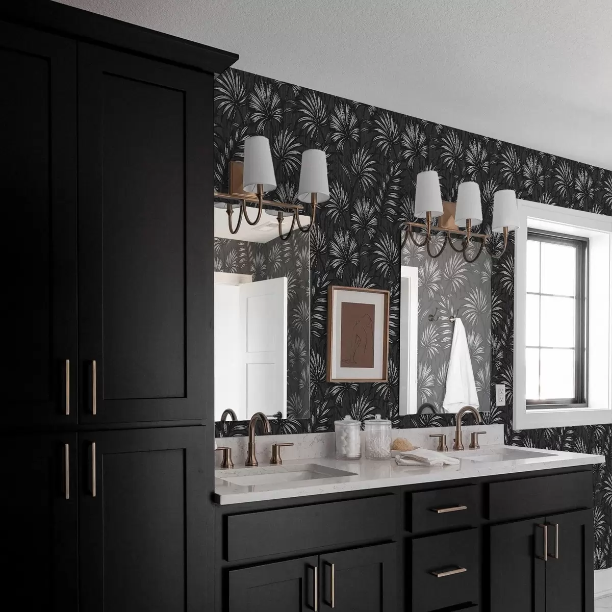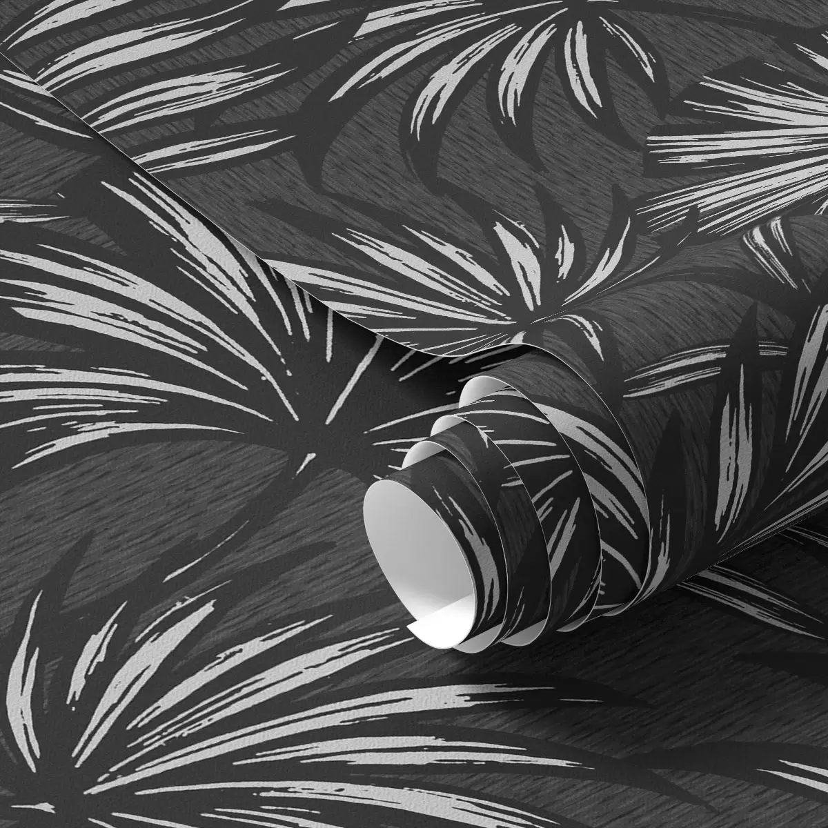 Papel pintado Hojas de palmera blancas y negras sobre fondo oscuro Nr. a00891