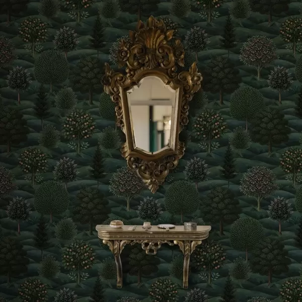 Papel pintado Paisaje ondulado de un verde intenso con árboles dispuestos en patrones Nr. a00892