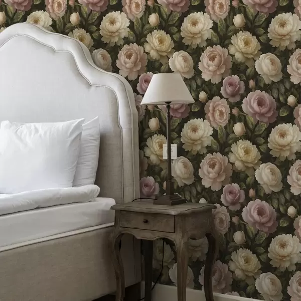 Papel pintado Románticas peonías sobre un fondo botánico oscuro Nr. a00893