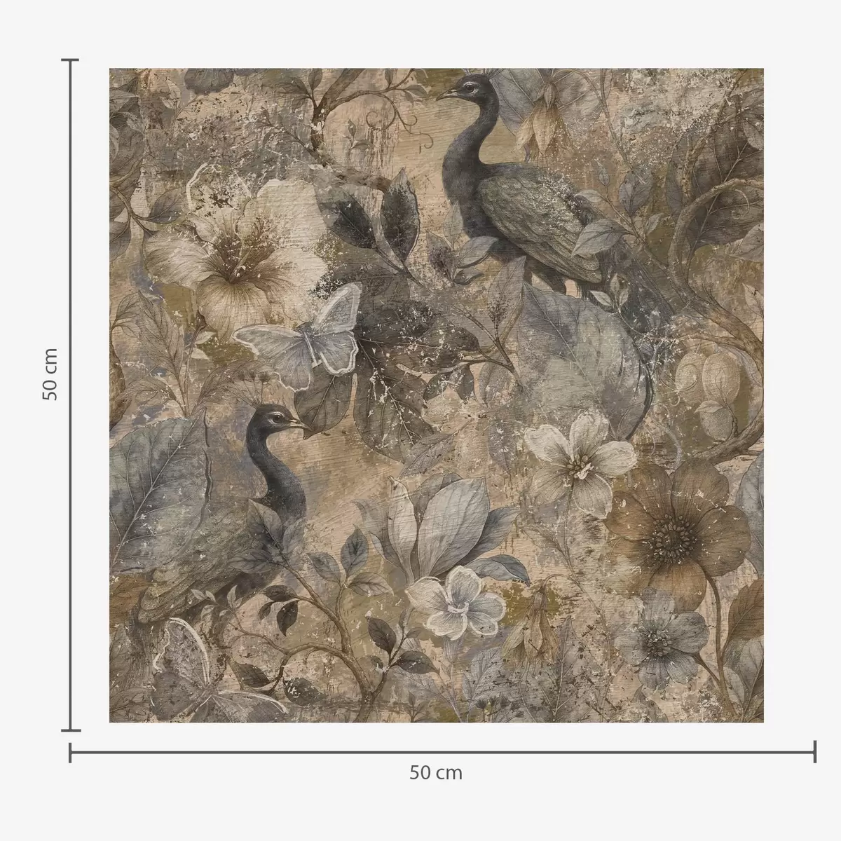 Papel pintado Collage floral envejecido con pavos reales y mariposas Nr. a00897