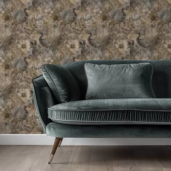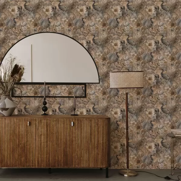 Papel pintado Collage floral envejecido con pavos reales y mariposas Nr. a00897