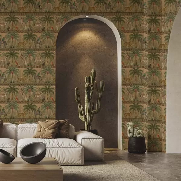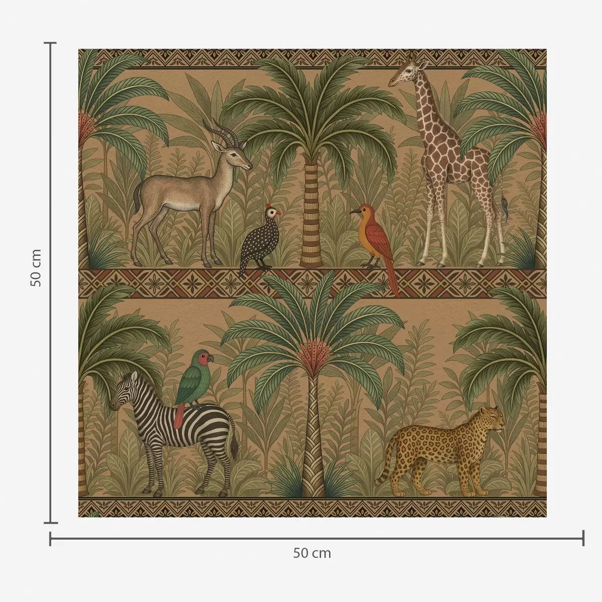 Papel pintado Animales decorativos de la sabana entre palmeras y bordes Nr. a00898