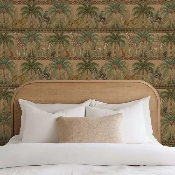 Papel pintado Animales decorativos de la sabana entre palmeras y bordes Nr. a00898