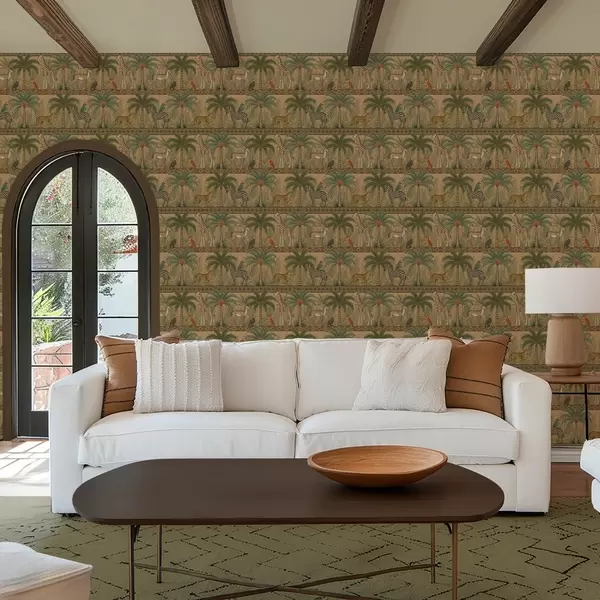 Papel pintado Animales decorativos de la sabana entre palmeras y bordes Nr. a00898