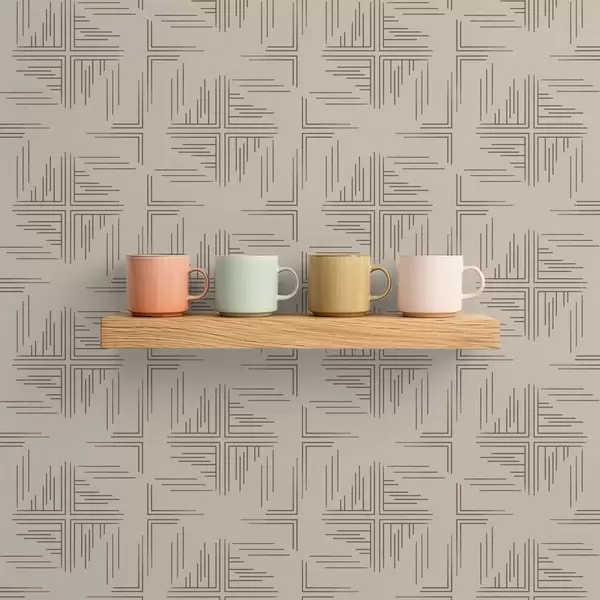 Papel pintado Bloques de esquina de cacao con detalles de líneas dispersas, beige Nr. a00912