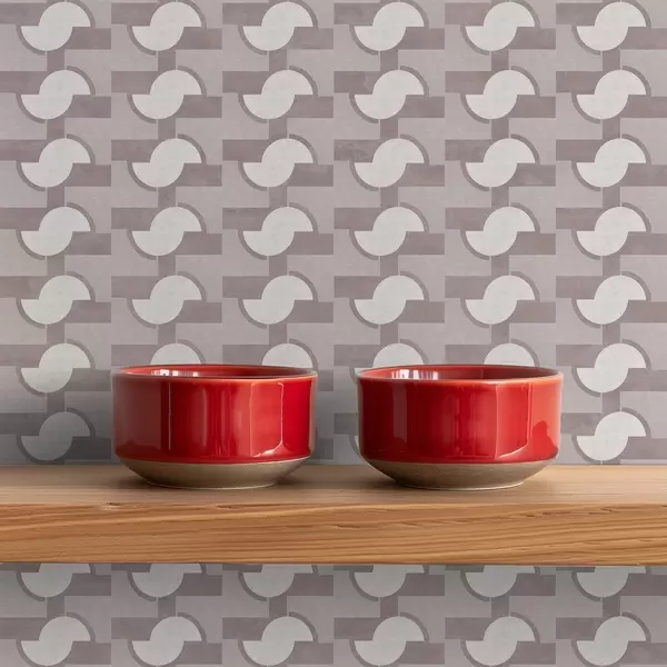 Papel pintado Azulejos modulares malva con semicírculos unidos Nr. a00915