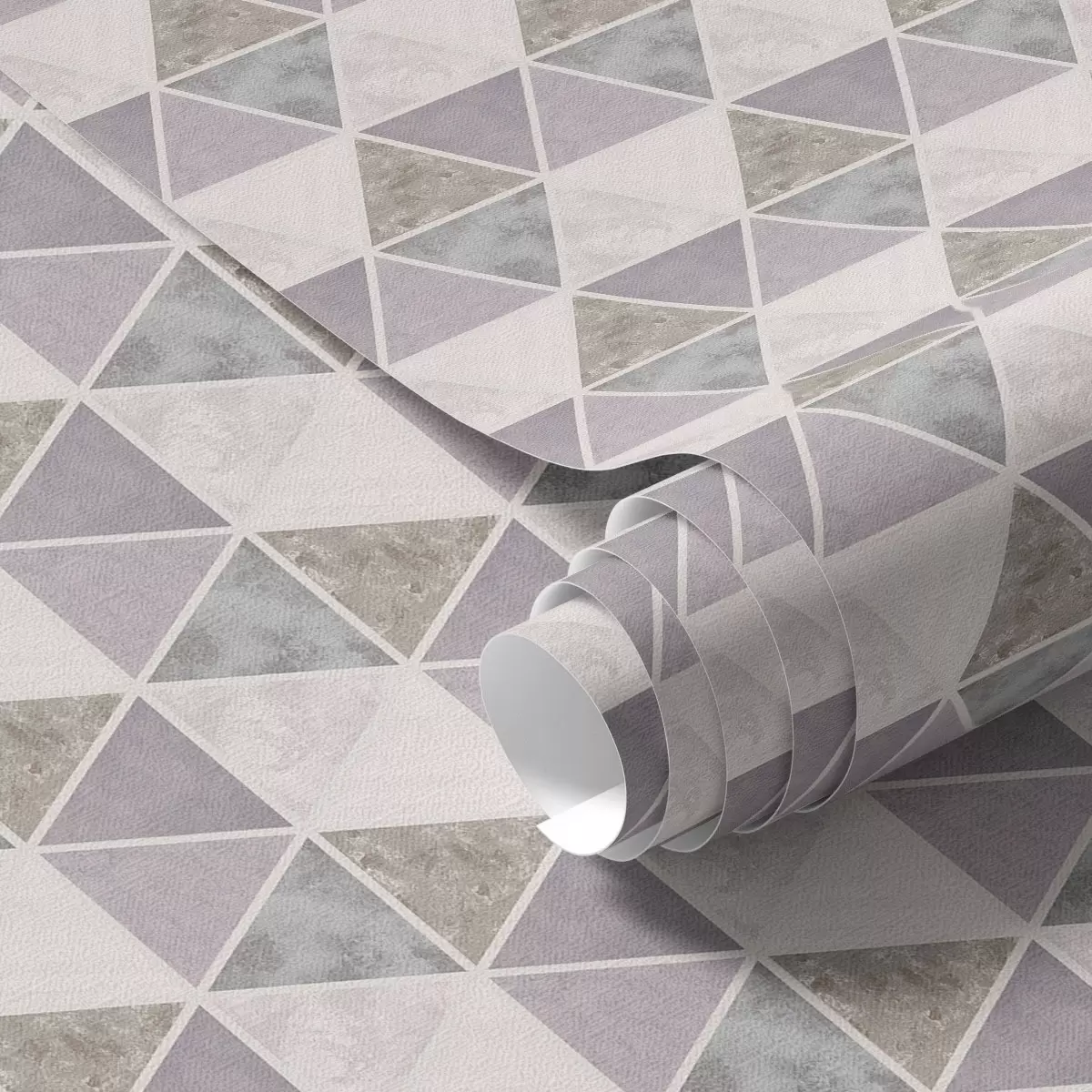 Papel pintado Triángulos con inserciones texturizadas, mezcla de gris lila y gris. Nr. a00917