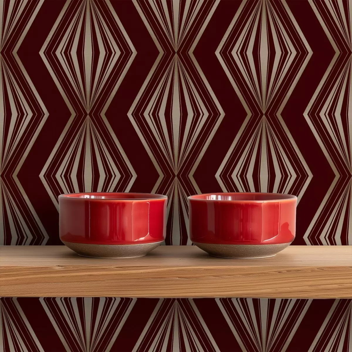Papel pintado Diseño geométrico de diamantes sobre fondo marrón vino. Nr. a00925v1