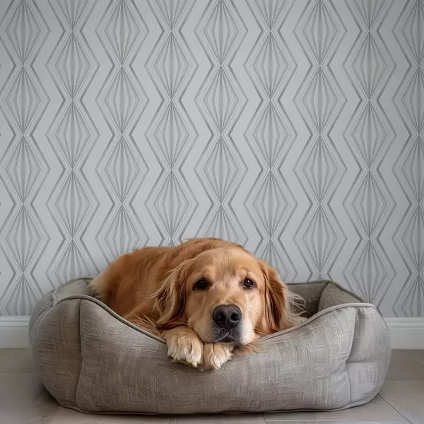 Papel pintado Formas de diamantes rayados en una fresca paleta de colores gris azulados. Nr. a00925v3