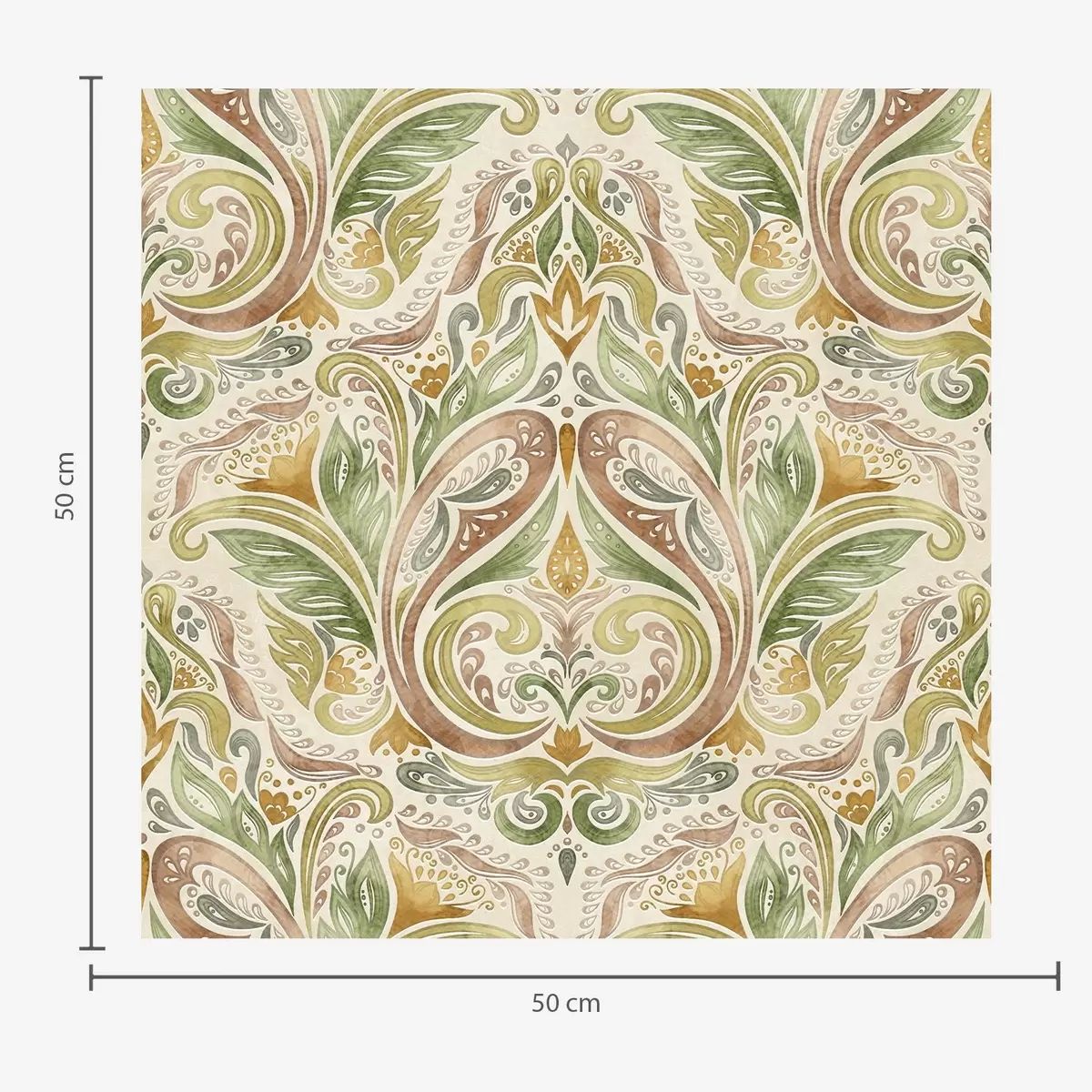 Papel pintado Remolinos de hojas en acuarela en tonos verdes y ocres cálidos. Nr. a00927