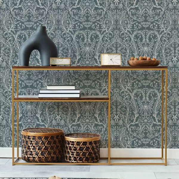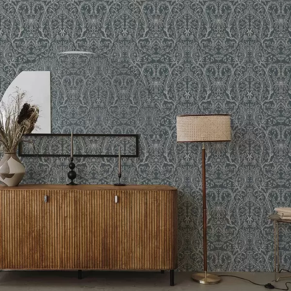 Papel pintado Adorno floral lineal sobre fondo gris azulado Nr. a00929v1