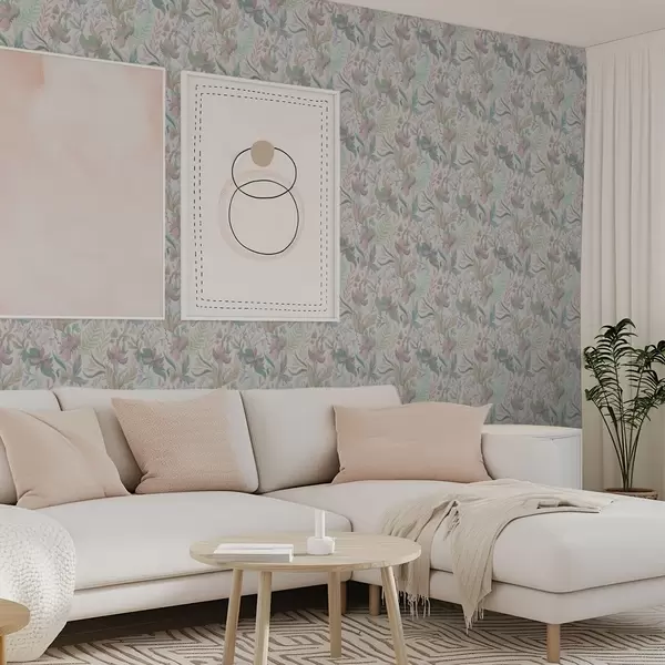 Papel pintado Delicadas flores y hojas en tonos pastel sobre un fondo claro Nr. a00931
