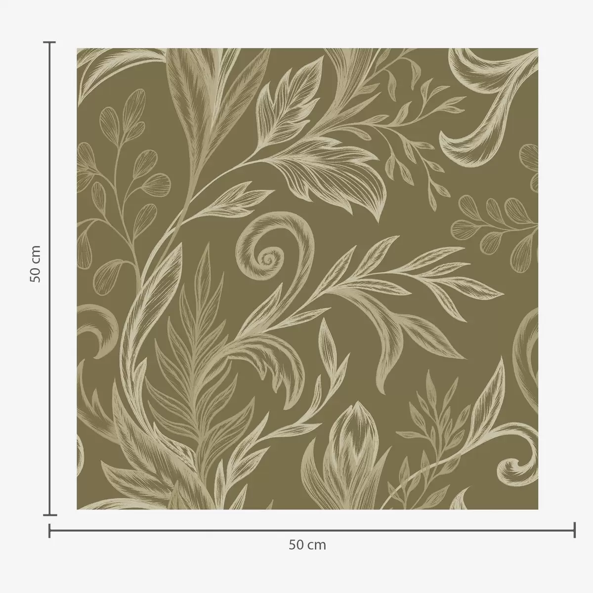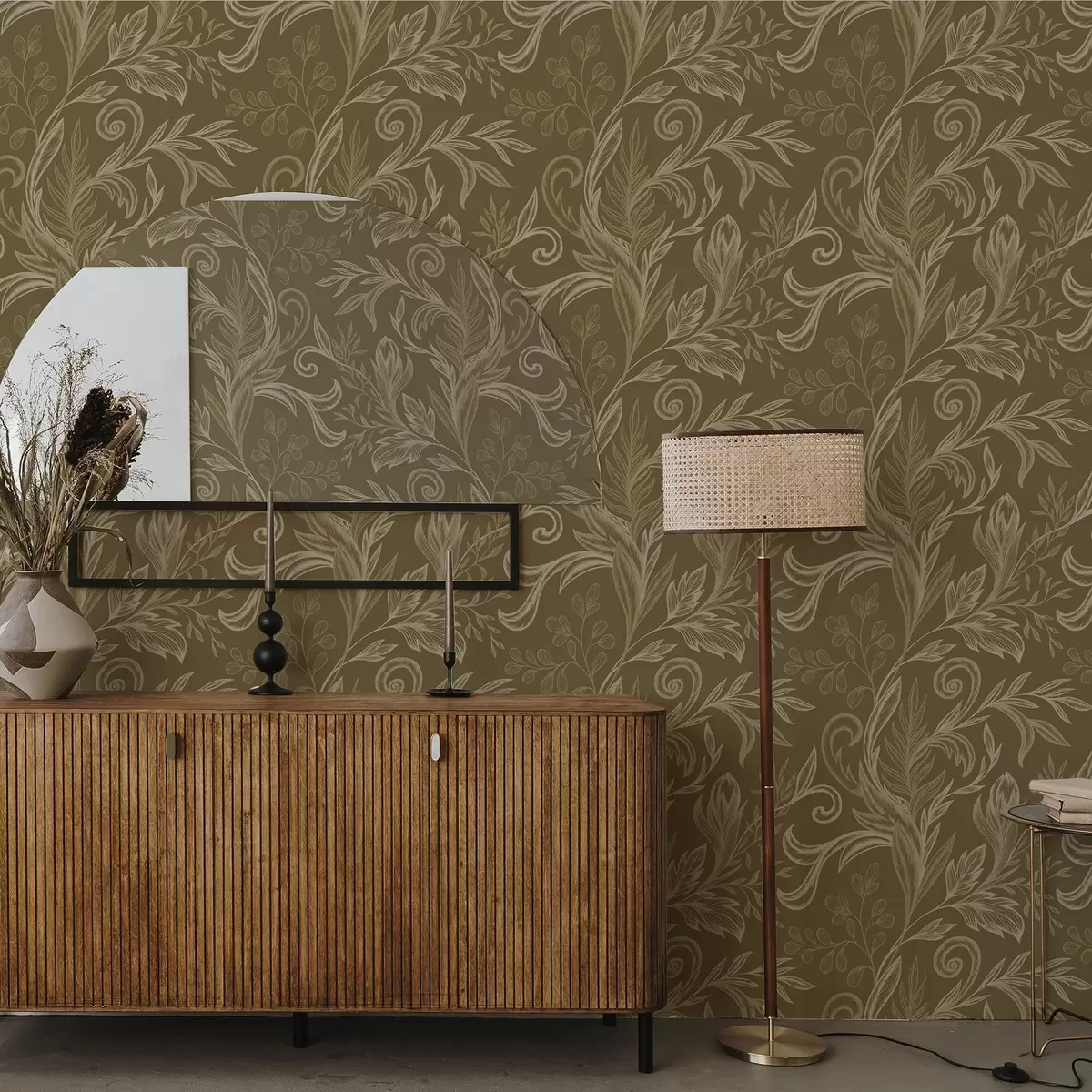 Papel pintado Hojas rizadas de color caqui cálido con ligeros toques crema. Nr. a00935v4
