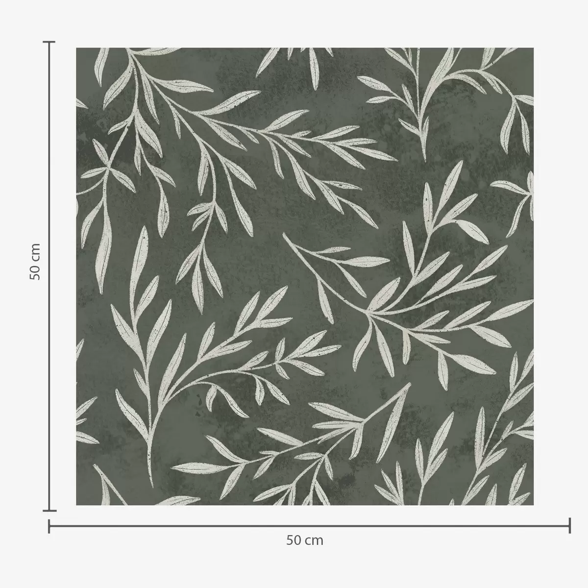 Papel pintado Ramas blancas esbozadas sobre un fondo verde salvia intenso. Nr. a00936v2