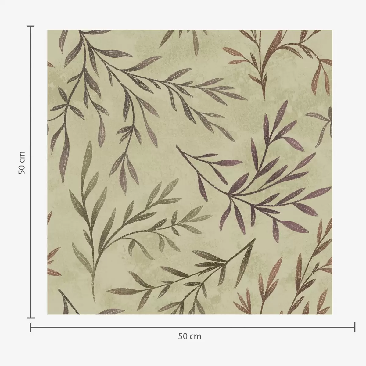 Papel pintado Ramas de lila y verde con hojas sobre un fondo cálido Nr. a00936v4
