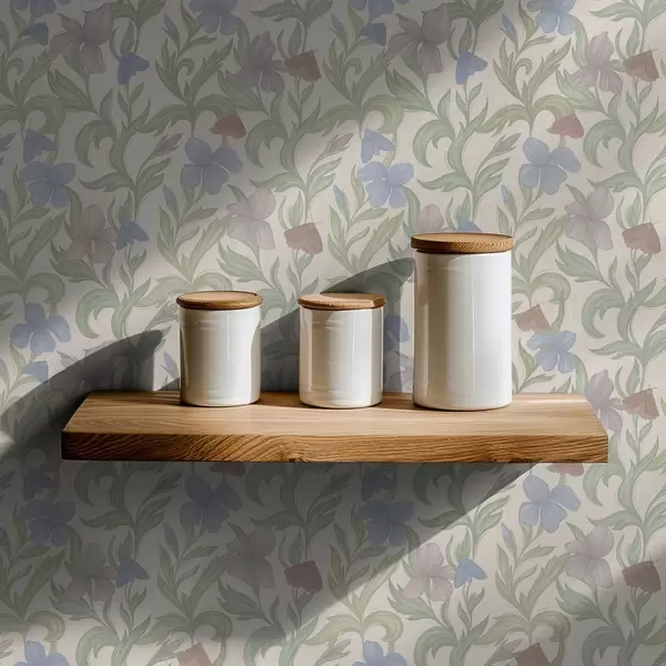 Papel pintado Flores y mariposas en tonos pastel sobre fondo crema Nr. a00944