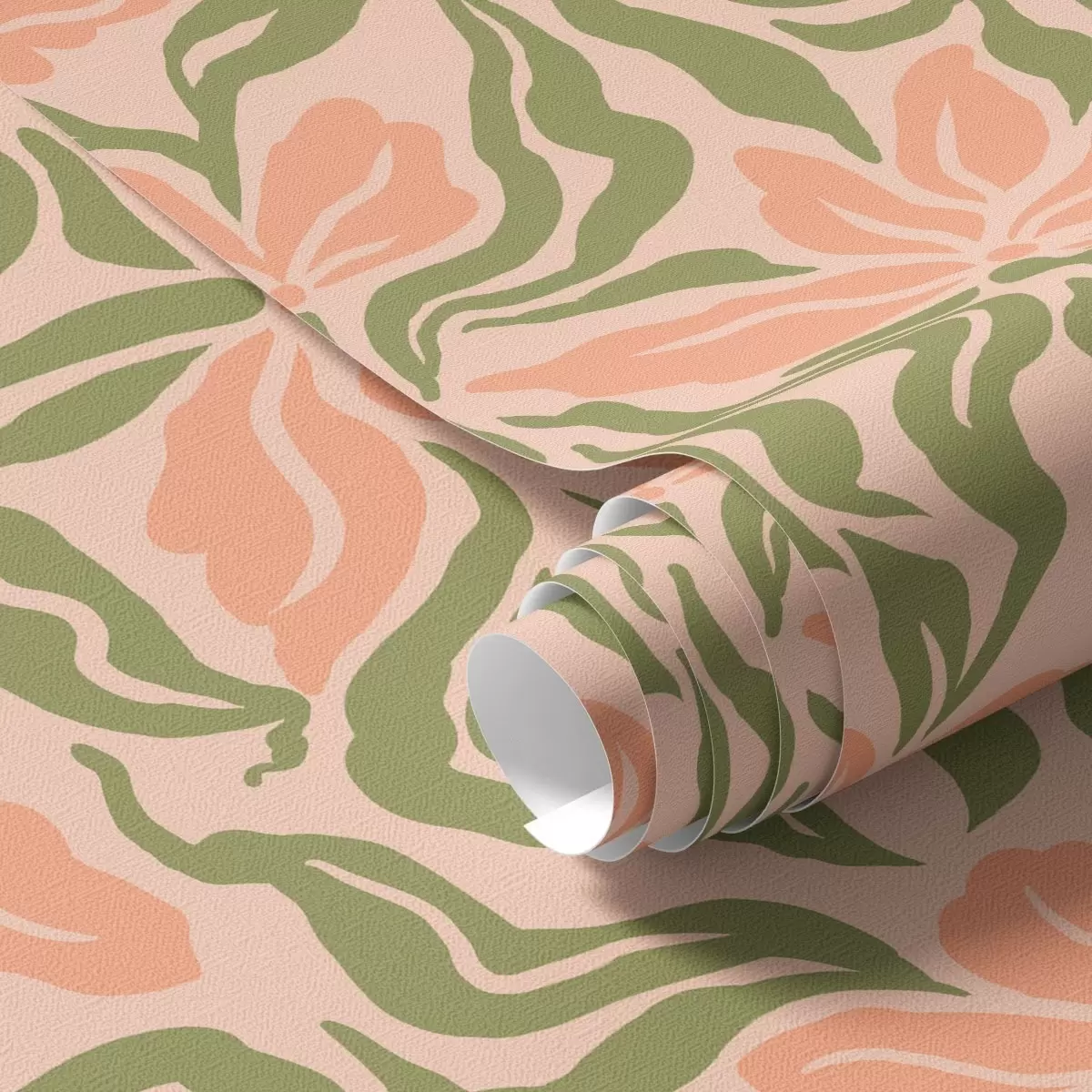 Papel pintado Flores de melocotonero y hojas de olivo sobre un fondo suave. Nr. a00958v1