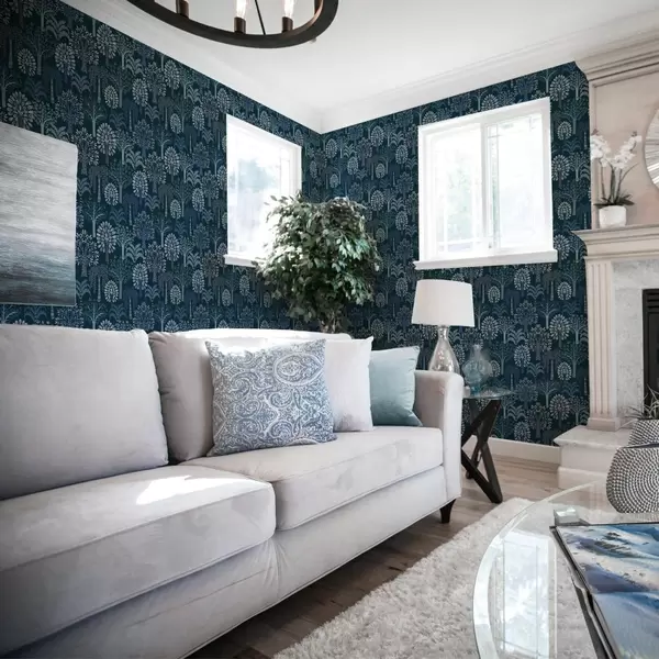 Papel pintado Bosque nocturno con árboles decorativos en tonos azules Nr. a00960v2