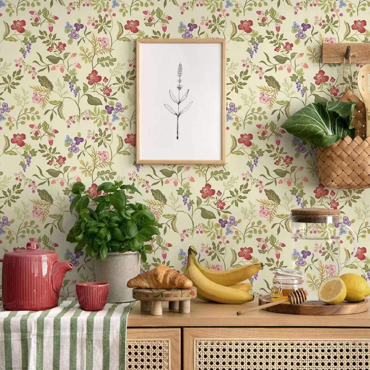 Papel pintado Jardín floreciente con bayas, uvas y flores silvestres. Nr. a00961