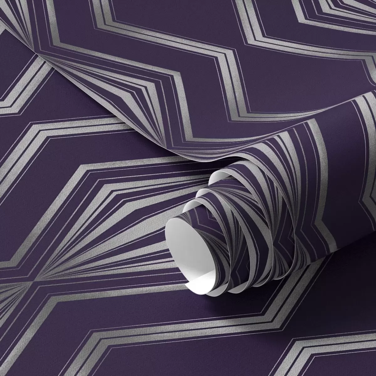 Papel pintado Fondo violeta intenso con diamantes y líneas grises en zigzag. Nr. a00974v1