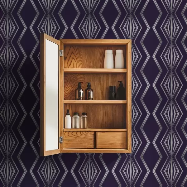 Papel pintado Fondo violeta intenso con diamantes y líneas grises en zigzag. Nr. a00974v1