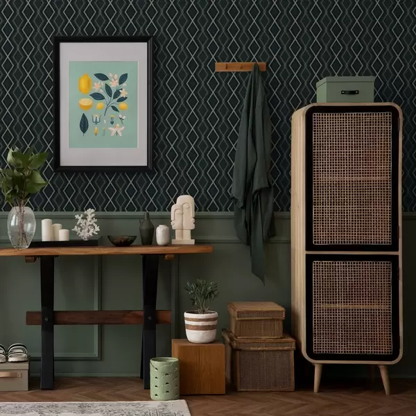 Papel pintado Fondo verde azulado oscuro con una rejilla de rombos repetitiva. Nr. a00975v1