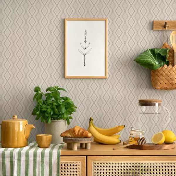Papel pintado Fondo beige claro con una rejilla de diamantes multicapa. Nr. a00975v2