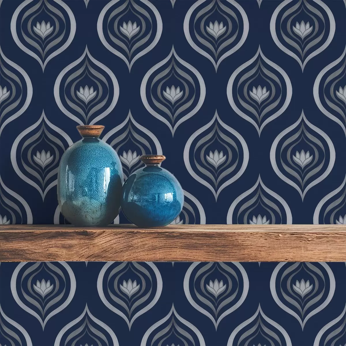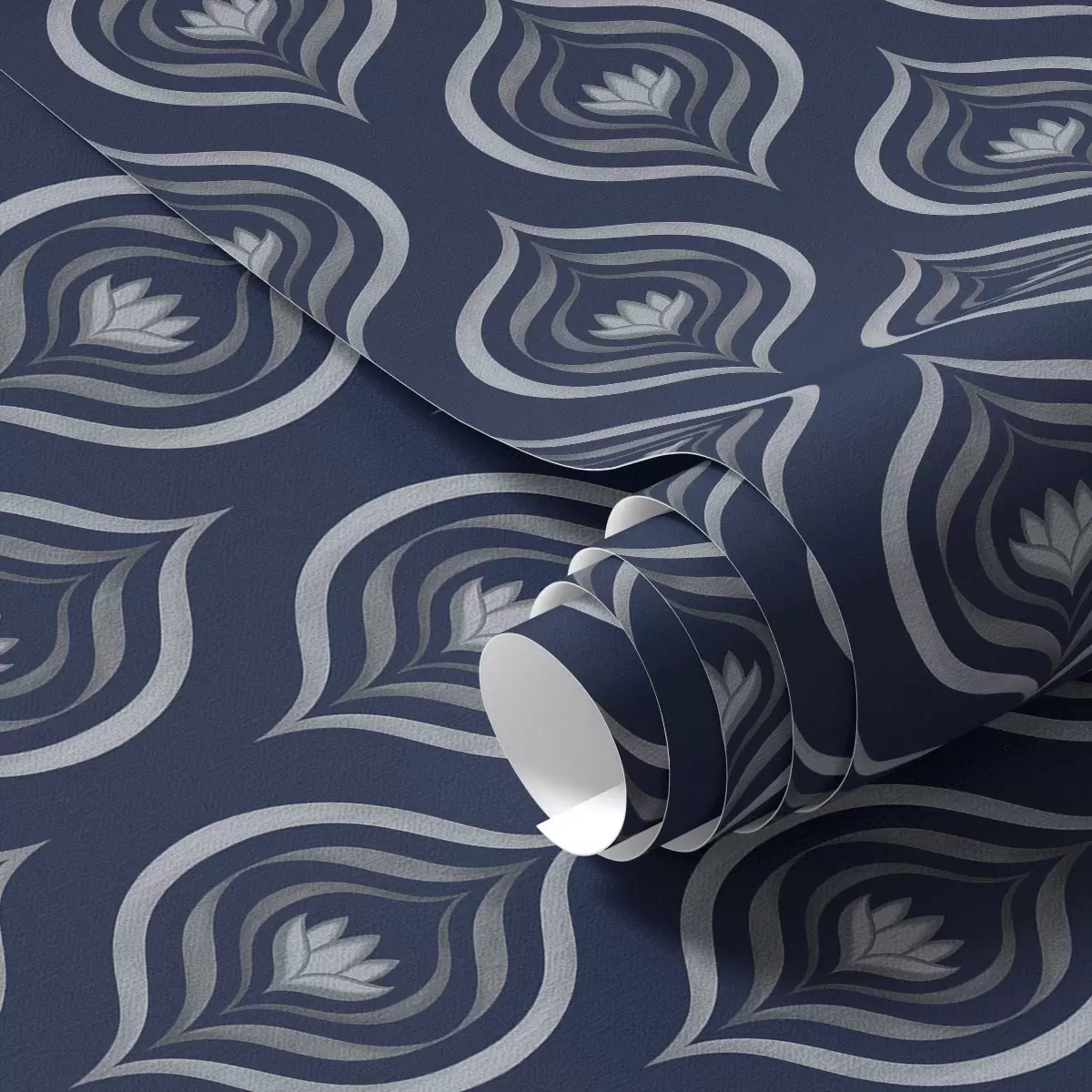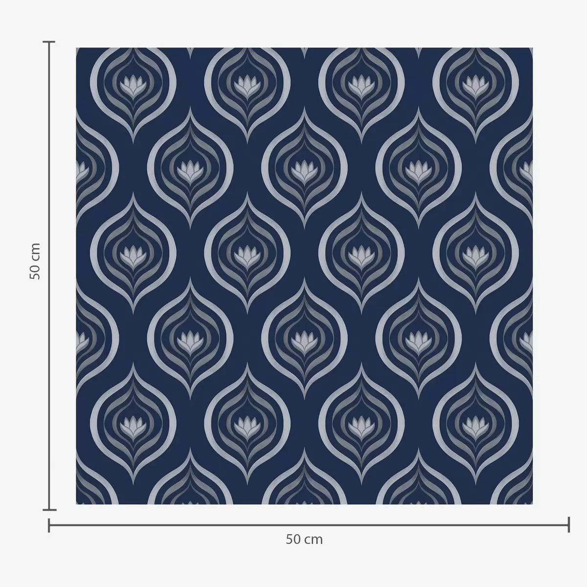 Papel pintado Motivos de gotas contrastantes con una flor sobre un fondo azul marino oscuro. Nr. a00977v1