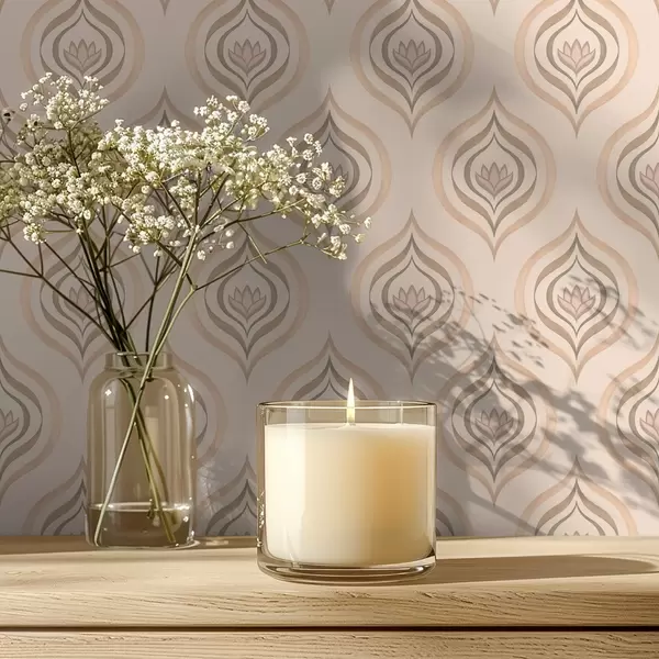 Papel pintado Motivos de gotas en polvo con una flor sobre un fondo cálido. Nr. a00977v2
