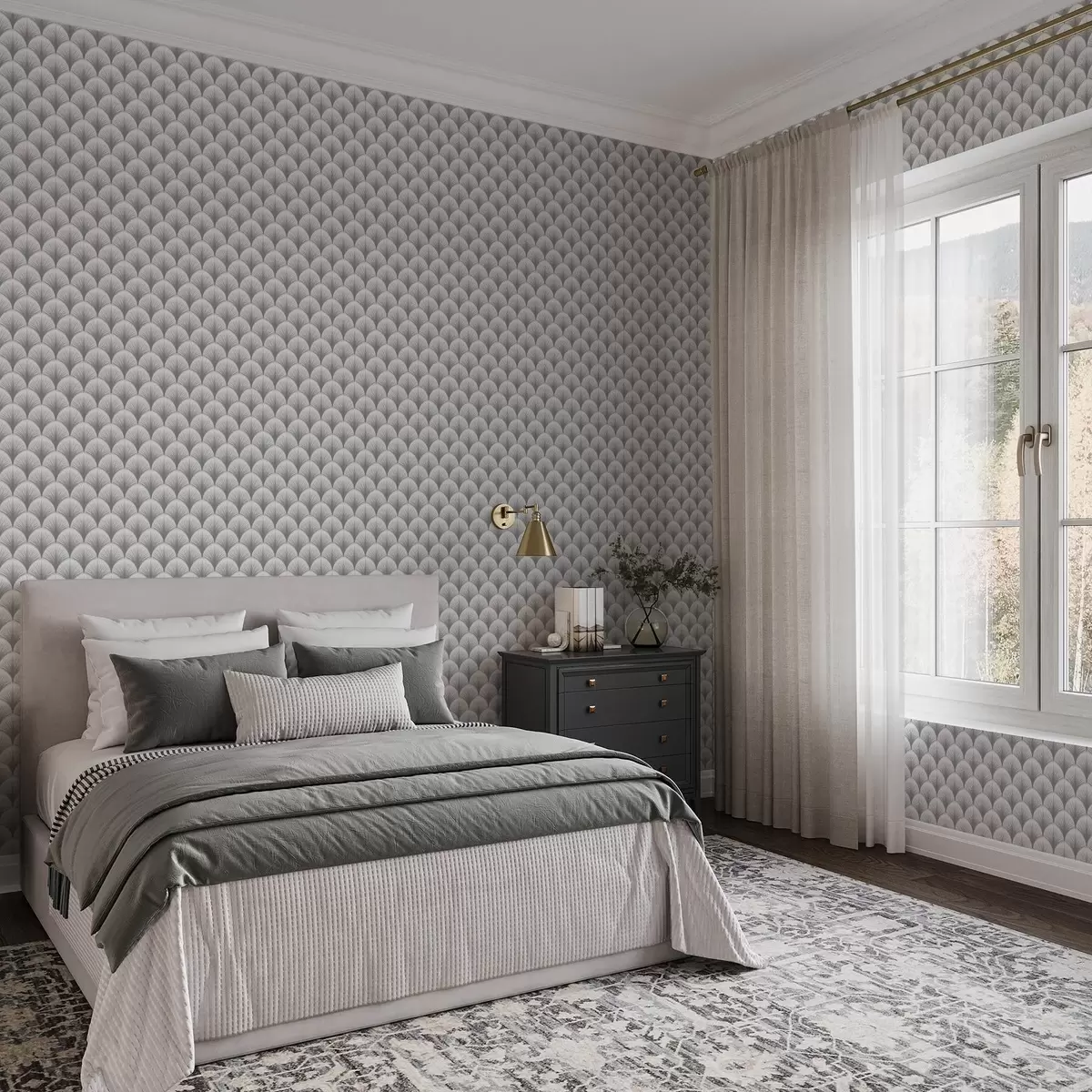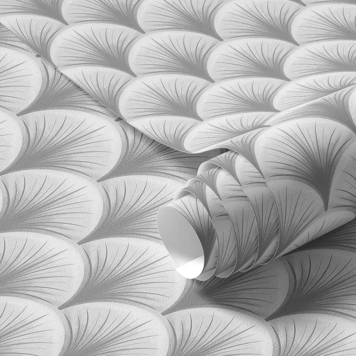 Papel pintado Arcos en abanico grises contrastantes sobre fondo blanco. Nr. a00978v4