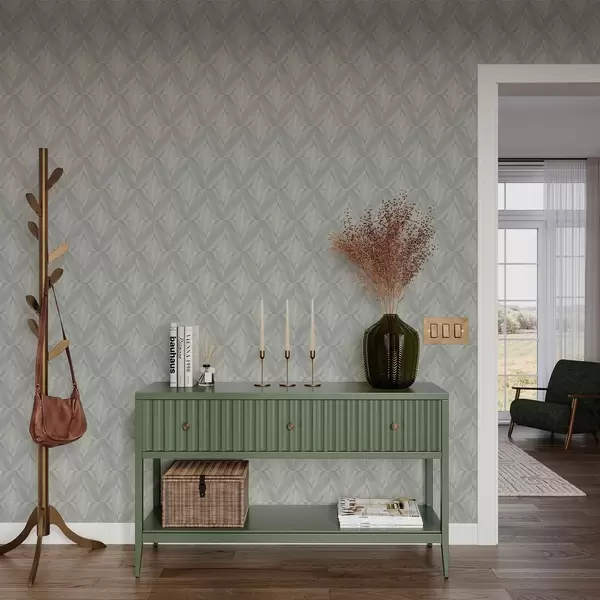 Papel pintado Trazos diagonales que forman cuadrados en una paleta de colores gris menta. Nr. a00983v1