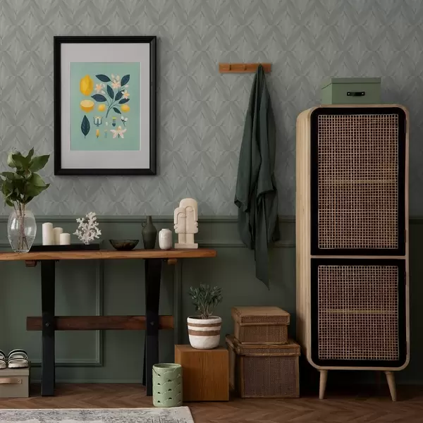 Papel pintado Trazos diagonales que forman cuadrados en una paleta de colores gris menta Nr. a00983v1
