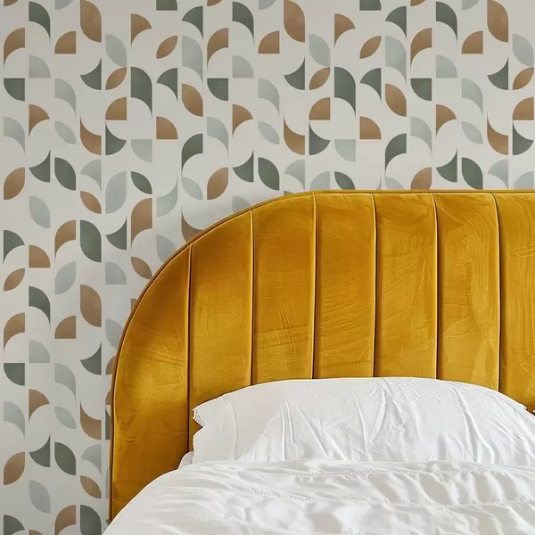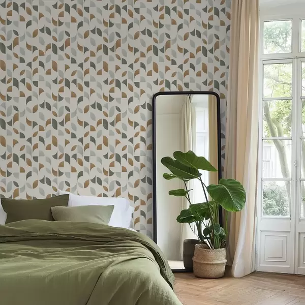 Papel pintado Medios círculos y hojas abstractos en verde y terracota Nr. a00985