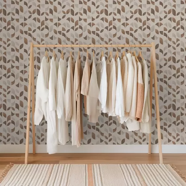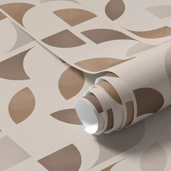 Papel pintado Ritmo de semicírculos y hojas en cálidos tonos marrón caramelo. Nr. a00986v1