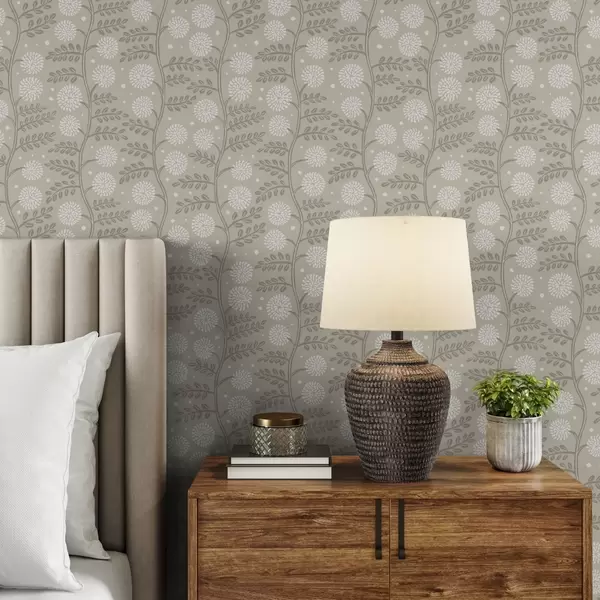 Papel pintado Tallos de color beige con flores blancas esponjosas y suaves puntos Nr. a00997