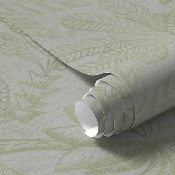 Papel pintado Hojas tropicales esbozadas en tonos verde claro frescos Nr. a01001v1