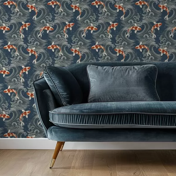 Papel pintado Peces koi nadando entre espectaculares olas oceánicas Nr. a01019