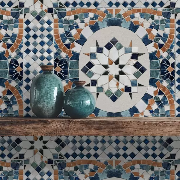 Papel pintado Mosaico marroquí brillante en tonos azul turquesa Nr. a01043
