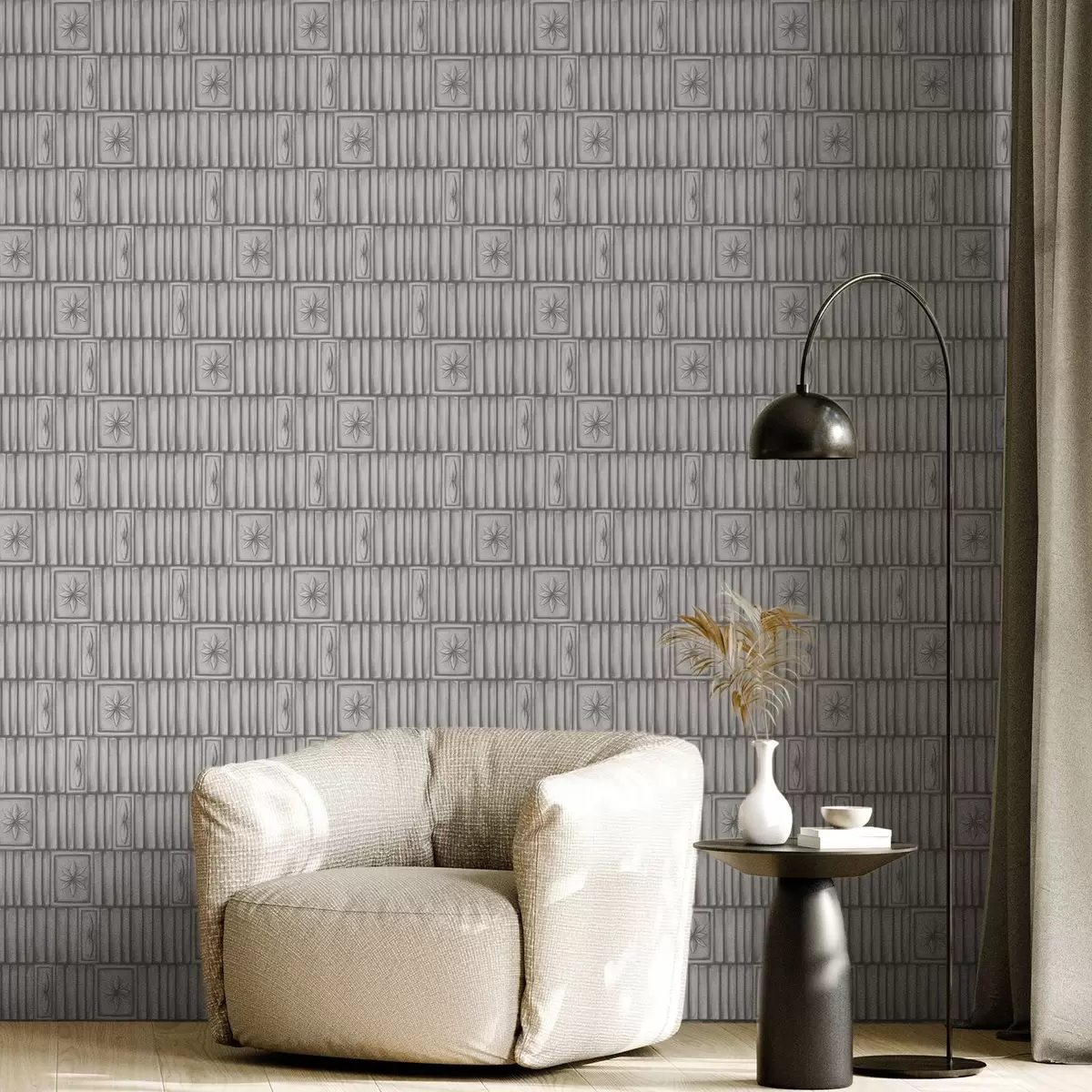 Papel pintado Paneles verticales en relieve con inserciones florales gráficas. Nr. a01058