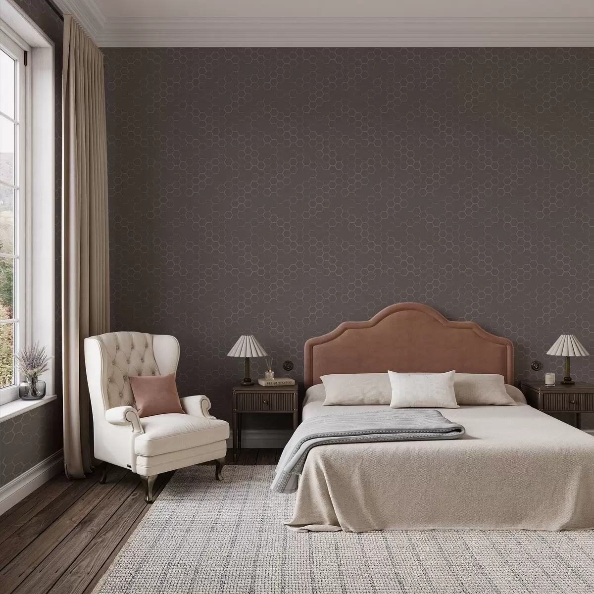 Papel pintado Denso patrón hexagonal en suaves tonos grises. Nr. a01060v2