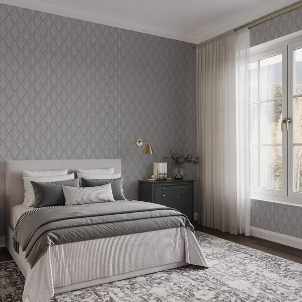 Papel pintado Art Déco gris con formas en forma de abanico Nr. a01064