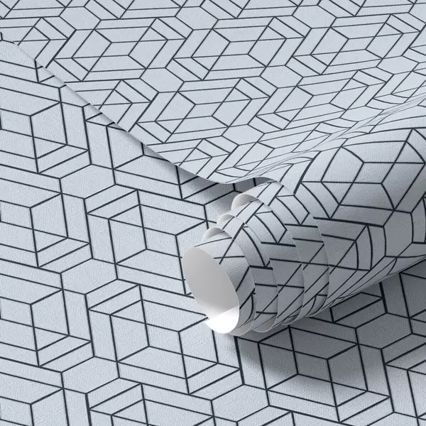 Papel pintado Patrón geométrico de cubos azul claro Nr. a01066