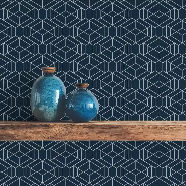 Papel pintado Celosía geométrica de cubos en azul marino oscuro a01066v1