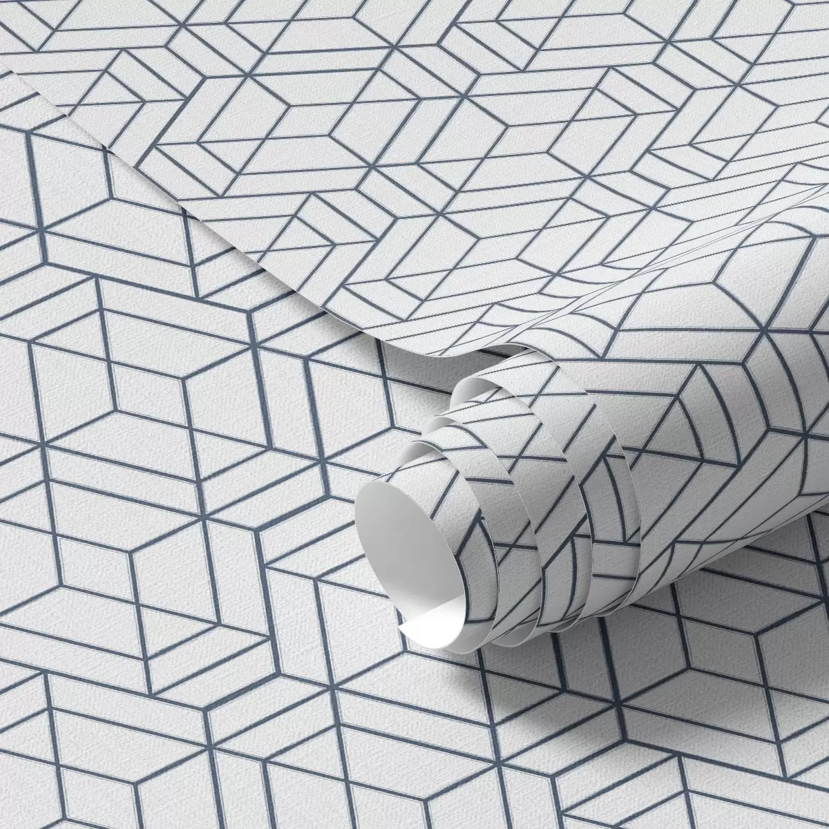 Papel pintado Fondo blanco con cubos geométricos tridimensionales azules. Nr. a01067