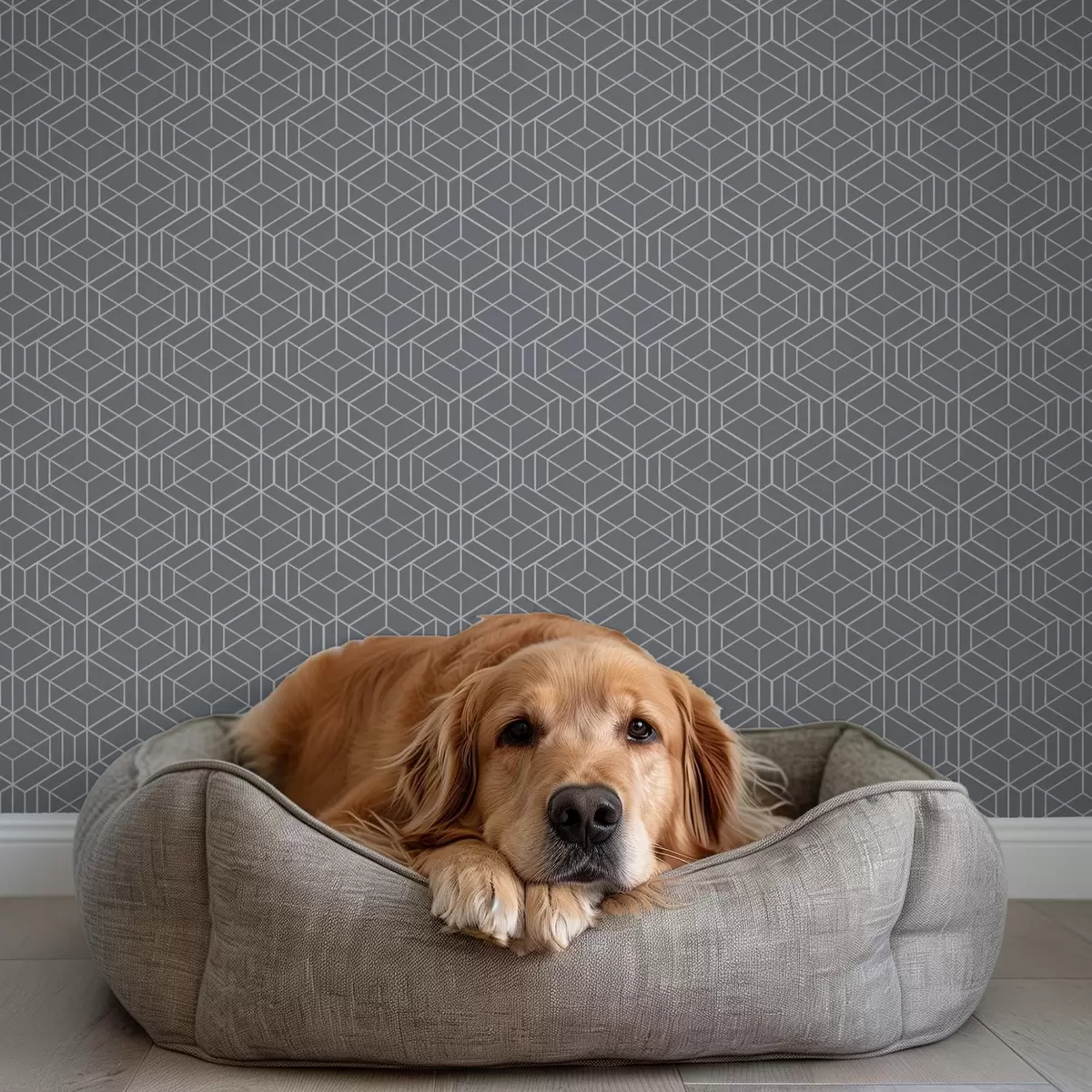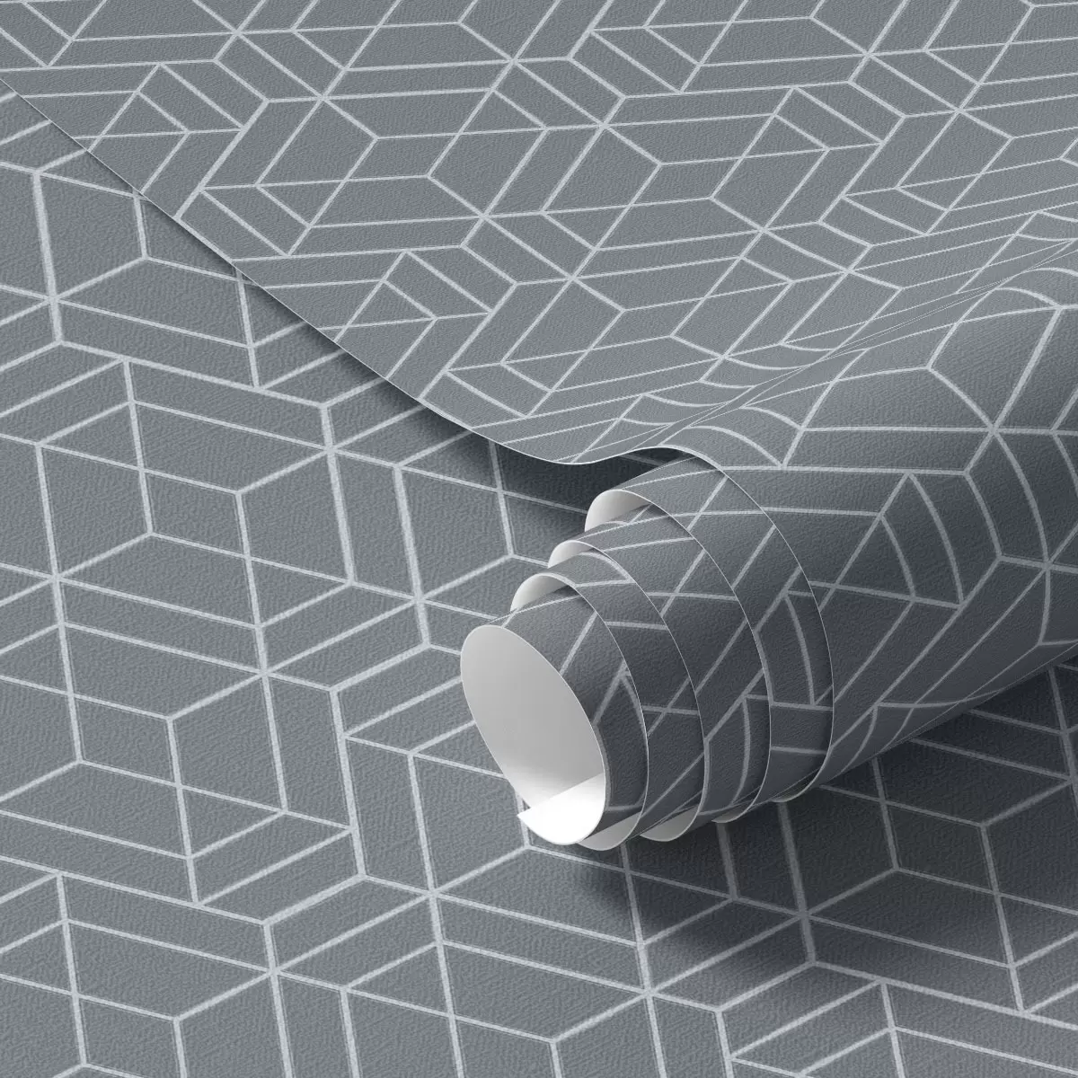 Papel pintado Fondo gris con cubos tridimensionales blancos en una cuadrícula. Nr. a01067v2