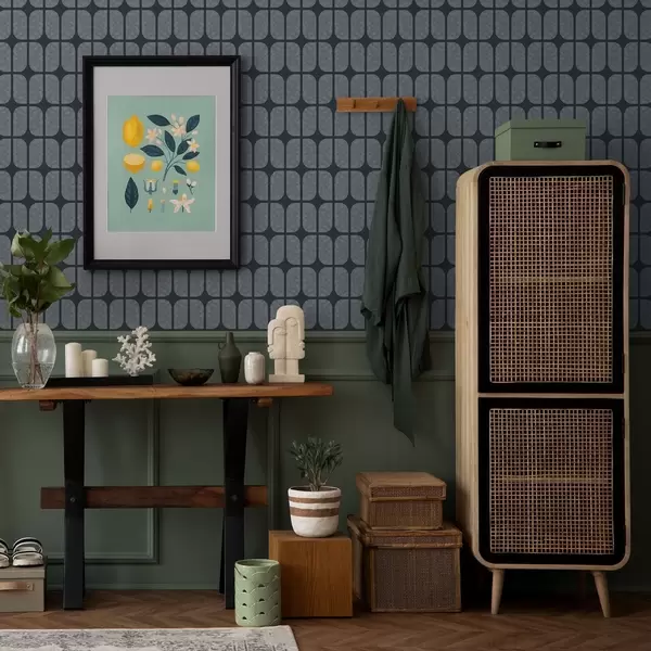 Papel pintado Fondo azul oscuro con mosaico gris de azulejos redondeados Nr. a01068v1