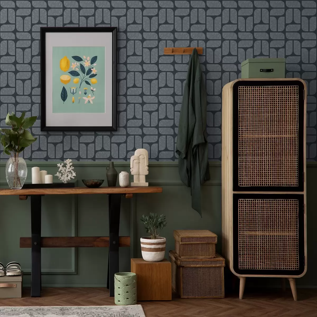 Papel pintado Fondo oscuro con mosaico gris de módulos redondeados Nr. a01069v1